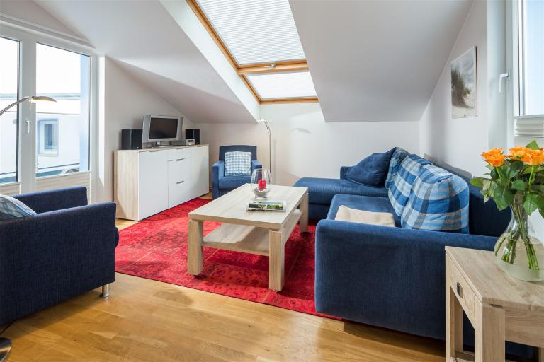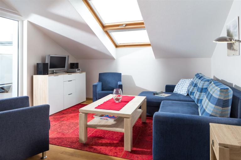 Die 35m² OG-Wohnung mit 2 Terrassen (à 6m²) ist die perfekte Unterkunft für 2 Personen.